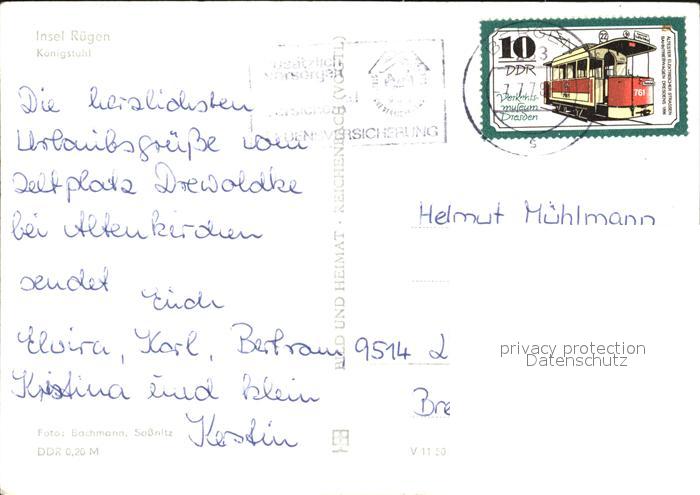 72543728 alte Postkarte Ruegen Koenigstuhl postalisch gelaufen Erhaltung siehe scans [LiesaD40 kv019box] KatCode: 11110013061004
