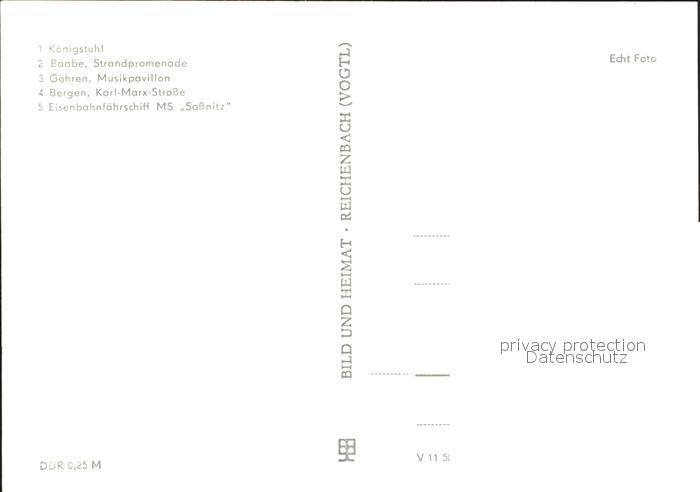 72378784 Ruegen Koenigstuhl Baaba Strandpromenade Goehren Musikpavillon Bergen Karl Marx Stadt Personenschiff MS Sassnitz postalisch nicht gelaufen Erhaltung siehe scans KatCode: 11110013061004