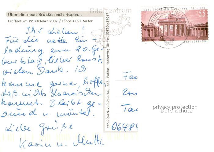 73725441 alte Postkarte Ruegen Ruegenbruecke von Stralsund zur Insel Ruegen Fliegeraufnahme postalisch gelaufen Erhaltung siehe scans [WerneD78] KatCode: 11110013061004