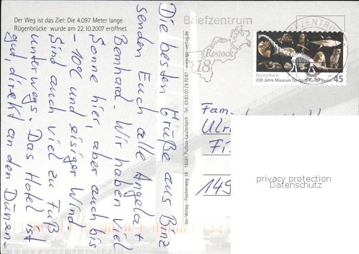 72567718 alte Postkarte Ruegen Ruegenbruecke postalisch gelaufen Erhaltung siehe scans [KathaD79] KatCode: 11110013061004