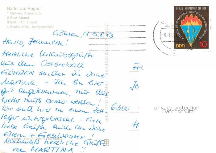 72628509 alte Postkarte Ruegen Seebaeder Goehren Binz Sellin Baabe HOG Inselparadies postalisch gelaufen Erhaltung siehe scans [WerneD78] KatCode: 11110013061004