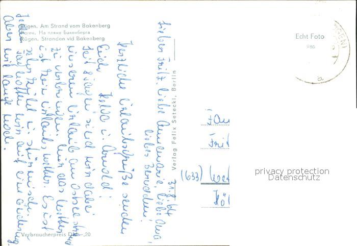 72115966 alte Postkarte Ruegen Strand Bakenberg postalisch gelaufen Erhaltung siehe scans KatCode: 11110013061004