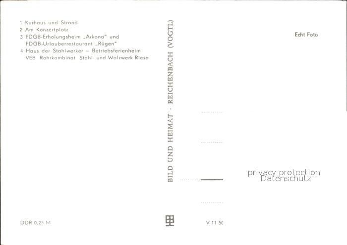 72336847 Ruegen Strand Kurhaus Konzertplatz FDGB Erholungsheim Arkona Urlauberrestaurant Ruegen Haus der Stahlwerker postalisch nicht gelaufen Erhaltung siehe scans KatCode: 11110013061004