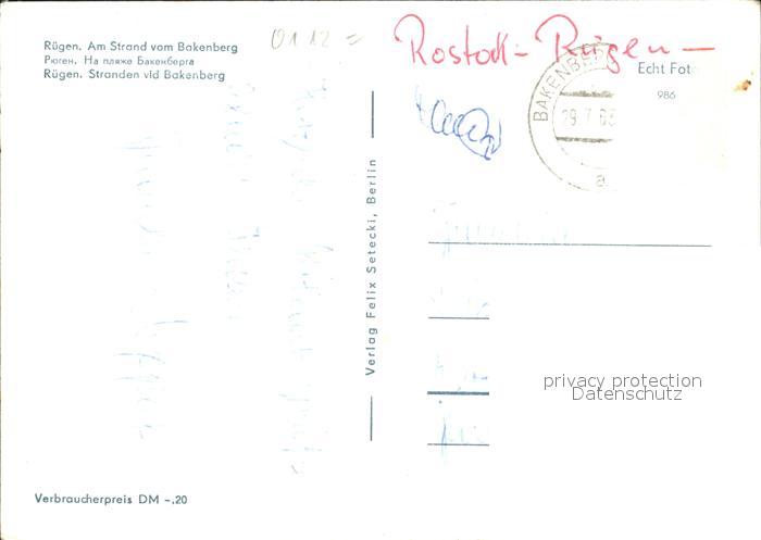 72121848 alte Postkarte Ruegen Strand von Bakenberg postalisch gelaufen Erhaltung siehe scans KatCode: 11110013061004
