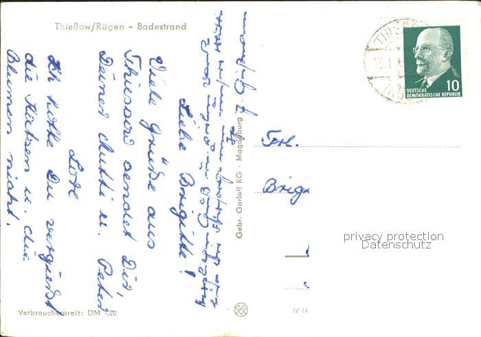 71929137 alte Postkarte Ruegen Thiessow Badestrand postalisch gelaufen Erhaltung siehe scans KatCode: 11110013061004
