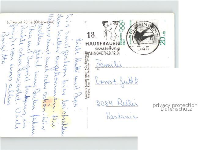 71975381 alte Postkarte Ruehle Oberweser Fliegeraufnahme postalisch gelaufen Erhaltung siehe scans KatCode: 11110003255003