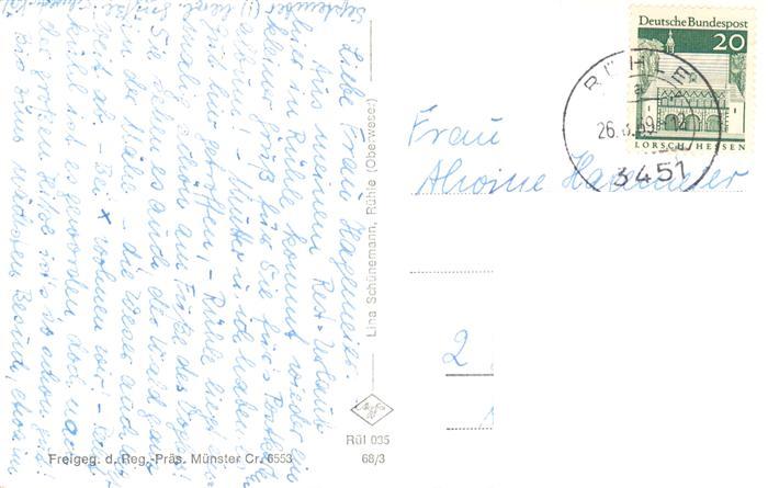 73878357 alte Postkarte Ruehle Oberweser Fliegeraufnahme postalisch gelaufen Erhaltung siehe scans [WerneD78] KatCode: 11110003255003