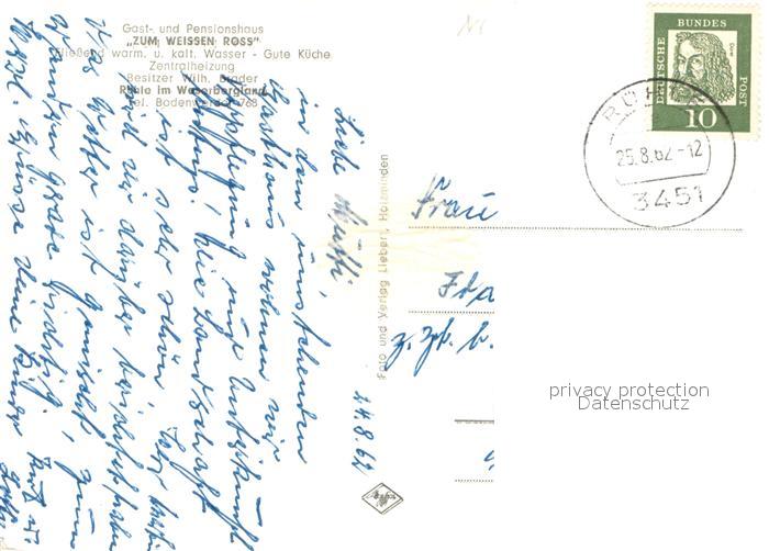 33659262 alte Postkarte Ruehle Oberweser Gast und Pensionshaus Zum Weissen Ross postalisch gelaufen Erhaltung siehe scans [WerneD78] KatCode: 11110003255003