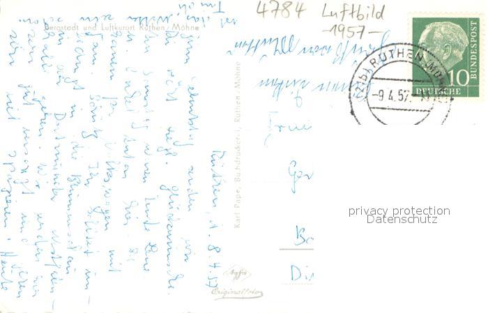 73703155 alte Postkarte Ruethen Moehne Fliegeraufnahme Totalaufnahme postalisch gelaufen Erhaltung siehe scans [LiesaD40] KatCode: 11110005974036
