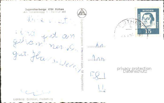 72090390 alte Postkarte Ruethen Moehne Jugendherberge postalisch gelaufen Erhaltung siehe scans KatCode: 11110005974036