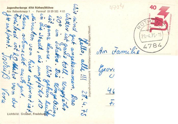 73893983 alte Postkarte Ruethen Moehne Jugendherberge Fliegeraufnahme postalisch gelaufen Erhaltung siehe scans [FriedD77] KatCode: 11110005974036