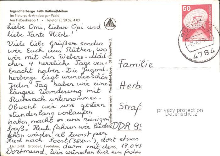 72062731 alte Postkarte Ruethen Moehne Jugendherberge im Nationalpark Arnsberger Wald postalisch gelaufen KatCode: 11110005974036