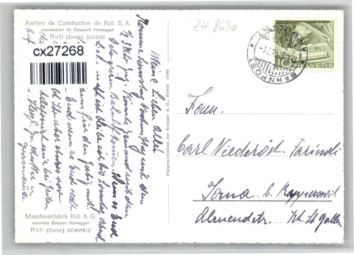 10849549 alte Postkarte Rueti ZH Fliegeraufnahme Ateliers Construction postalisch gelaufen KatCode: 11470260885302