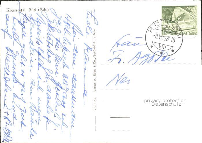 11635627 alte Postkarte Rueti ZH Kreisspital Fliegeraufnahme postalisch gelaufen Erhaltung siehe scans KatCode: 11470260885302