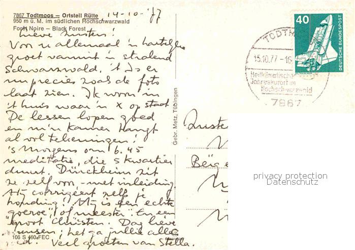 72855821 alte Postkarte Ruette Todtmoos Panorama Schwarzwald Herbststimmung postalisch gelaufen Erhaltung siehe scans [FriedD77] KatCode: 11110008337108
