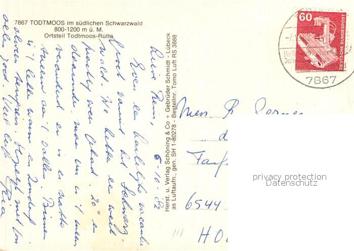 72934722 alte Postkarte Ruette Todtmoos Schwarzwald Fliegeraufnahme postalisch gelaufen Erhaltung siehe scans [FriedD77] KatCode: 11110008337108