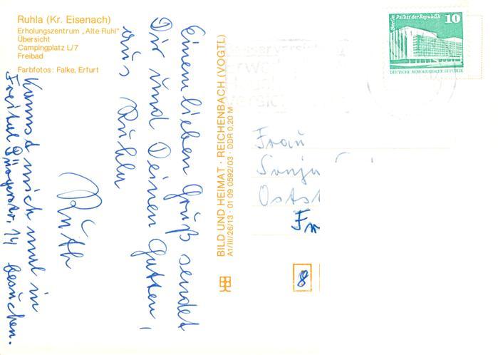 73894841 alte Postkarte Ruhla Erholungszentrum Alte Ruhl uebersicht Campingplatz Freibad postalisch gelaufen Erhaltung siehe scans [FriedD77] KatCode: 11110016063066