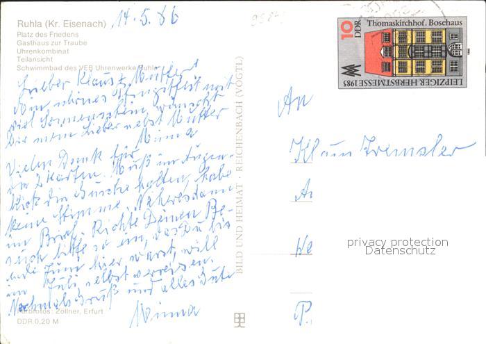 72123701 alte Postkarte Ruhla Platz des Friedens Restaurant zur Traube Uhrenkombinat postalisch gelaufen Erhaltung siehe scans KatCode: 11110016063066