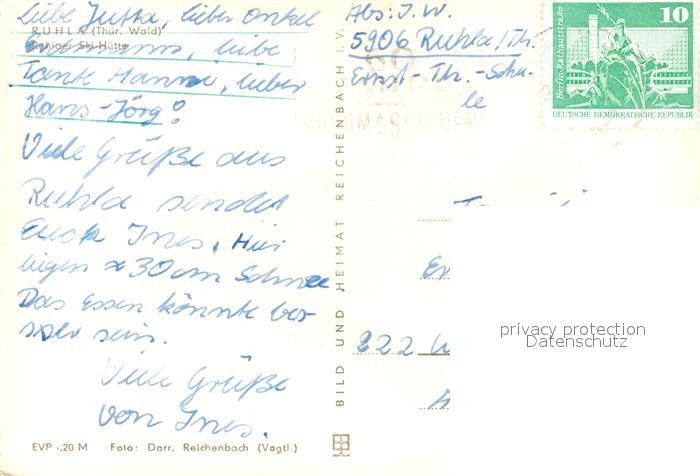 73102581 alte Postkarte Ruhla Ruhlaer Skihuette postalisch gelaufen Erhaltung siehe scans [KathaD81] KatCode: 11110016063066
