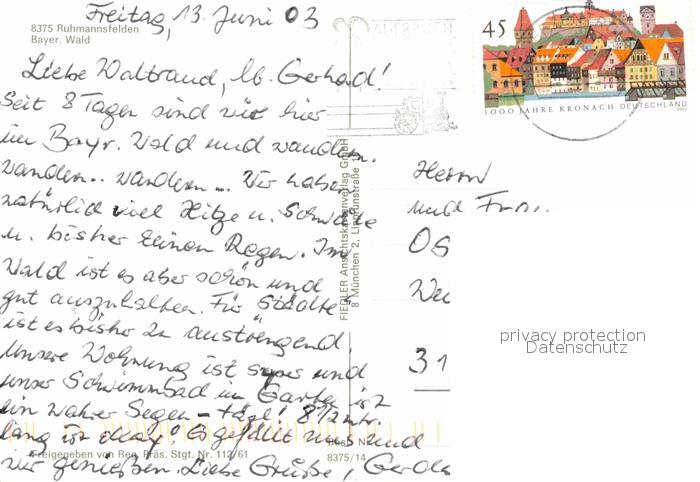 72908019 alte Postkarte Ruhmannsfelden Bayerischer Wald Fliegeraufnahme postalisch gelaufen Erhaltung siehe scans [FriedD77] KatCode: 11110009276142