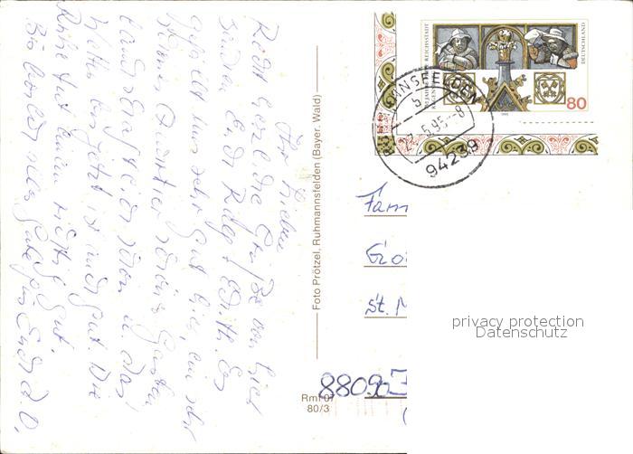 72413769 alte Postkarte Ruhmannsfelden Bayerischer Wald Osterbruennl Arber Schutzhuette Marktplatz postalisch gelaufen Erhaltung siehe scans KatCode: 11110009276142