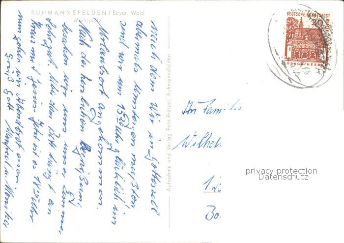 72251416 alte Postkarte Ruhmannsfelden Marktplatz mit Brunnen postalisch gelaufen Erhaltung siehe scans KatCode: 11110009276142