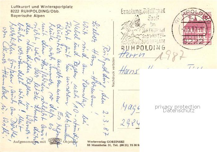 72925591 alte Postkarte Ruhpolding postalisch gelaufen Erhaltung siehe scans [NatalD47] KatCode: 11110009189140