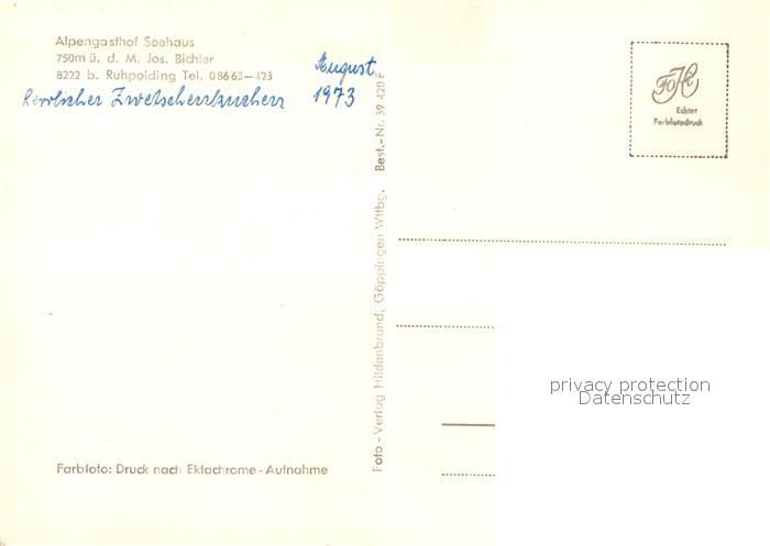 73108164 Ruhpolding Alpengasthof Seehaus postalisch nicht gelaufen Erhaltung siehe scans [NatalD47] KatCode: 11110009189140