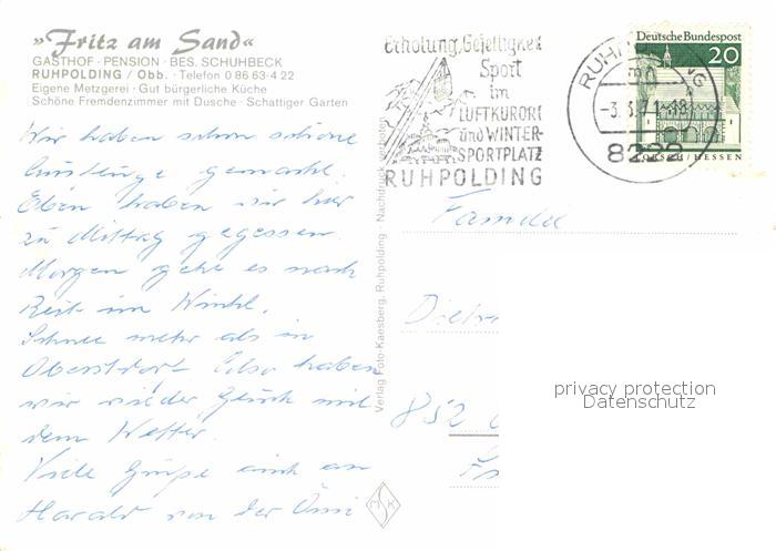 72869469 alte Postkarte Ruhpolding Bayern Alpengasthof Fritz am Sand postalisch gelaufen Erhaltung siehe scans [NatalD47] KatCode: 11110009189140