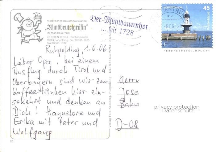 72455288 alte Postkarte Ruhpolding Bayern Bauernhauskaffee Windbeutelgraefin postalisch gelaufen Erhaltung siehe scans KatCode: 11110009189140