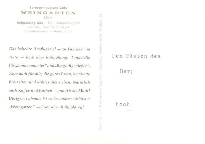 73921113 Ruhpolding Bayern Berggasthaus Cafe Weingarten Terrasse postalisch nicht gelaufen Erhaltung siehe scans [WerneD78] Wern Katcode 11110009189140