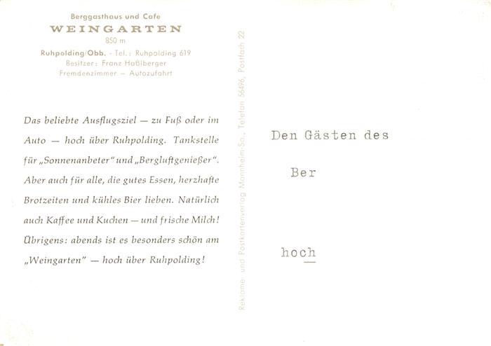 73921610 Ruhpolding Bayern Berggasthaus und Cafe Weingarten Terrasse postalisch nicht gelaufen Erhaltung siehe scans [WerneD78] Wern Katcode 11110009189140