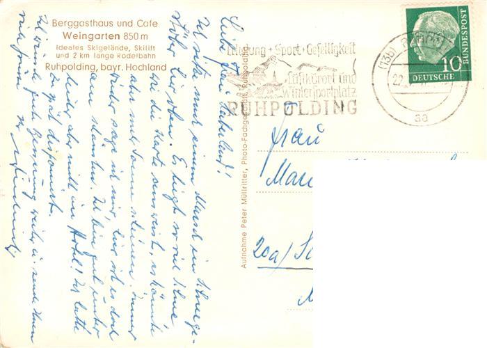 73895769 Ruhpolding Bayern Berggasthaus und Cafe Weingarten postalisch gelaufen Erhaltung siehe scans [FriedD77] alte Postkarte Frie Katcode 11110009189140