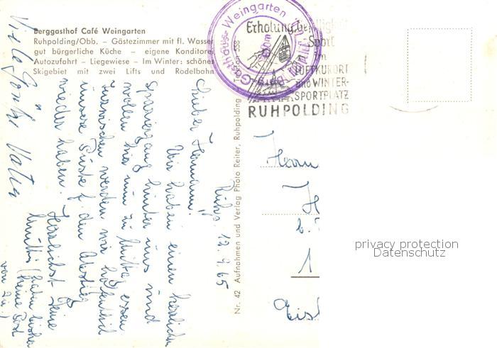 73859494 Ruhpolding Bayern Berggasthof Cafe Weingarten Restaurant Terrasse postalisch gelaufen Erhaltung siehe scans [FriedD77] alte Postkarte Frie Katcode 11110009189140