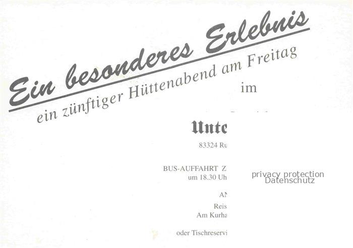 74043428 Ruhpolding Bayern Berggasthof Unternberg-Hof Restaurant Huettenabend Sonnenterrasse postalisch nicht gelaufen Werbekarte (keine Postkarte) Erhaltung siehe scans [FriedD77] Werbekarte (keine Postkarte) Frie Katcode 11110009189140