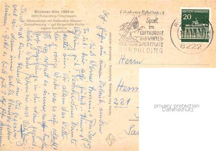 72724250 alte Postkarte Ruhpolding Bayern Blickner Alm Berggaststaette Alpenpanorama postalisch gelaufen Erhaltung siehe scans [FriedD77] KatCode: 11110009189140