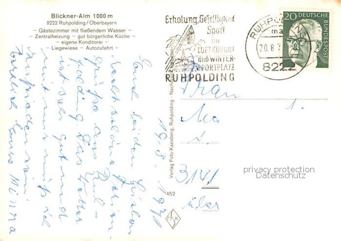 73836241 Ruhpolding Bayern Blickner Alm Terrasse Panorama postalisch gelaufen Erhaltung siehe scans [WerneD78] alte Postkarte Wern Katcode 11110009189140