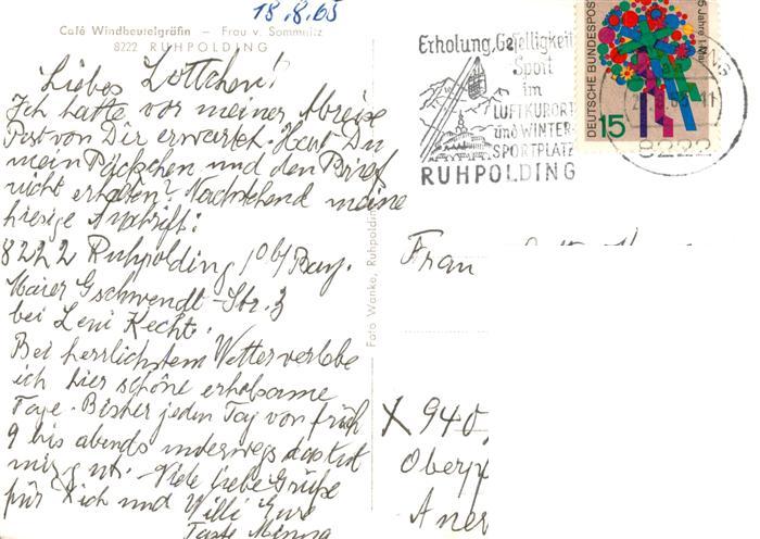 73882860 Ruhpolding Bayern Cafe Windbeutelgraefin postalisch gelaufen Erhaltung siehe scans [WerneD78] alte Postkarte Wern Katcode 11110009189140