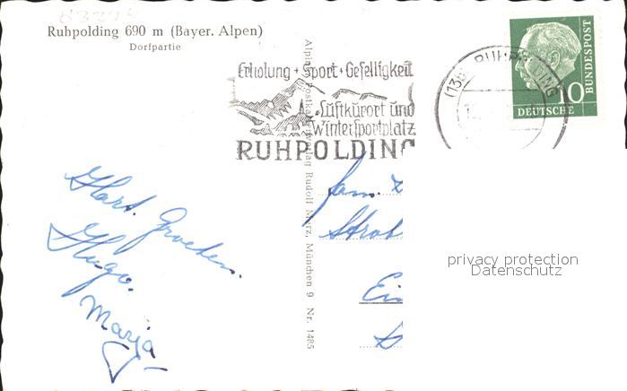 72090719 alte Postkarte Ruhpolding Bayern Dorfpartie Brunnen postalisch gelaufen KatCode: 11110009189140