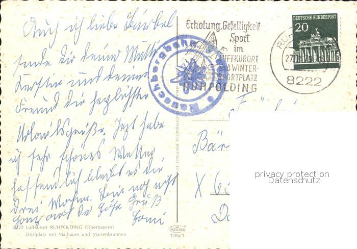 72554694 alte Postkarte Ruhpolding Bayern Dorfplatz Maibaum Maibrunnen postalisch gelaufen Erhaltung siehe scans [AntonD74] KatCode: 11110009189140