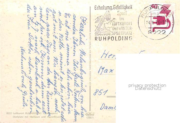 72678723 alte Postkarte Ruhpolding Bayern Dorfplatz mit Maibaum und Marienbrunnen postalisch gelaufen Erhaltung siehe scans [FriedD77] KatCode: 11110009189140