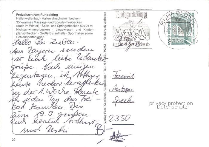 72377524 alte Postkarte Ruhpolding Bayern Freizeitzentrum Freibad Sprungtuerme Hallenwellenbad postalisch gelaufen Erhaltung siehe scans KatCode: 11110009189140