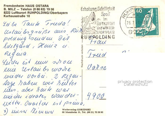 73708630 Ruhpolding Bayern Fremdenheim Haus Ostara Luftkurort postalisch gelaufen Erhaltung siehe scans [FriedD77] alte Postkarte Frie Katcode 11110009189140