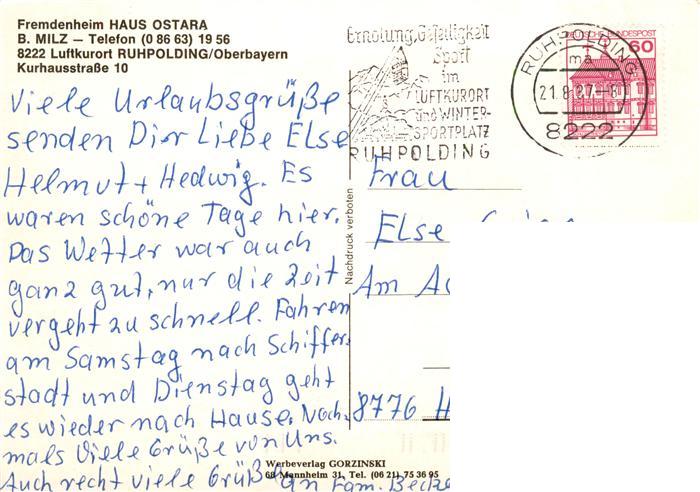 73946870 Ruhpolding Bayern Fremdenheim Haus Ostara postalisch gelaufen Erhaltung siehe scans [FriedD77] alte Postkarte Frie Katcode 11110009189140
