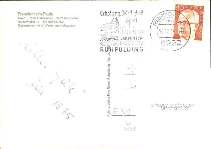 72088935 alte Postkarte Ruhpolding Bayern Fremdenheim Paula postalisch gelaufen Erhaltung siehe scans KatCode: 11110009189140