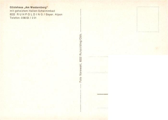 73916168 Ruhpolding Bayern Gaestehaus Am Westernberg mit Hallenbad postalisch nicht gelaufen Erhaltung siehe scans [FriedD77] Frie Katcode 11110009189140