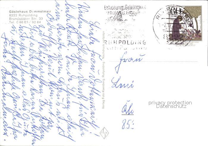 72398175 alte Postkarte Ruhpolding Bayern Gaestehaus Demmelmair postalisch gelaufen Erhaltung siehe scans KatCode: 11110009189140