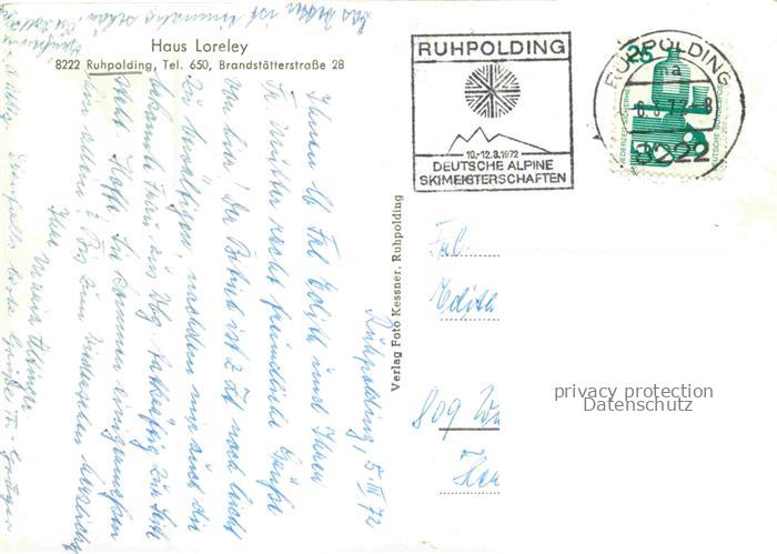 Ruhpolding Bayern Gaestehaus Haus Loreley Panorama Alpen postalisch gelaufen Erhaltung siehe scans [FriedD77] alte Postkarte Frie Katcode 11110009189140