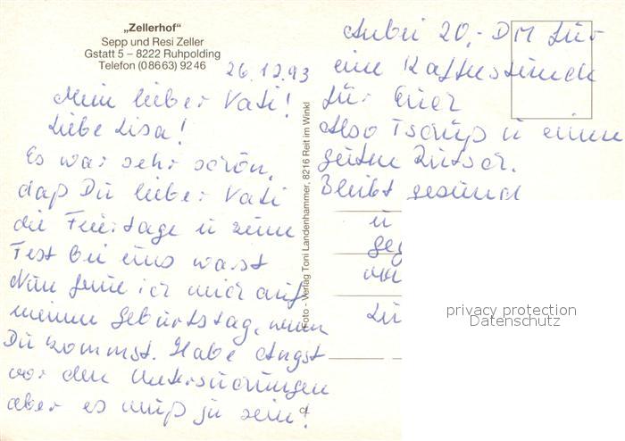 73645924 Ruhpolding Bayern Gaestehaus Pension Zellerhof Fremdenzimmer Gastraum Pferdekutsche postalisch nicht gelaufen Erhaltung siehe scans [FriedD77] Frie Katcode 11110009189140
