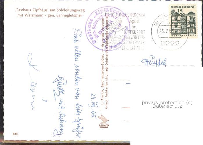 41479403 Ruhpolding Bayern Gasthaus Zipfhaeusl am Soleleitungsweg Terrasse Watzmann Sahnegletscher postalisch gelaufen Erhaltung siehe scans Alte Ansichtskarte Postkarte alte Postkarte hz_F Katcode 11110009189140